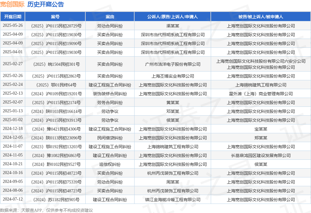 本站消息,根据天眼查APP显示,近日公布了一则上海宽创国际文化科技股份有限公司作为被告/被上诉人的开庭公告,详细内容如下: